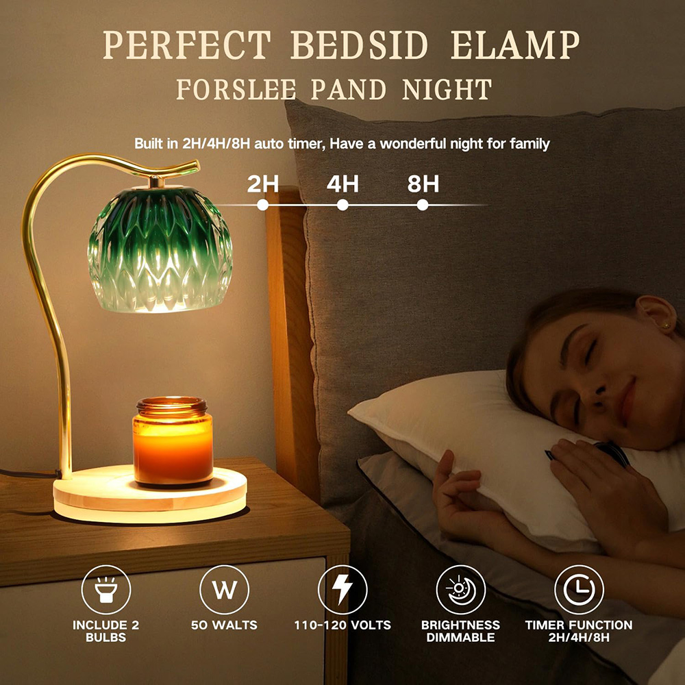 - 【Fit All Size Candles & Perfect Home Decor】The wax warmers with 6.6inch wooden base and height adjustment compatible with all size candles. Good choice for those who are in apartments not allowed open-flame candles. The candle warmer adopts a Retro style design and is a delicate functional decorative lamp, suitable for living rooms, bedrooms, offices, yoga rooms, cafes, etc. It can also be used as a bedside lamp to create a sleep-inducing atmosphere.