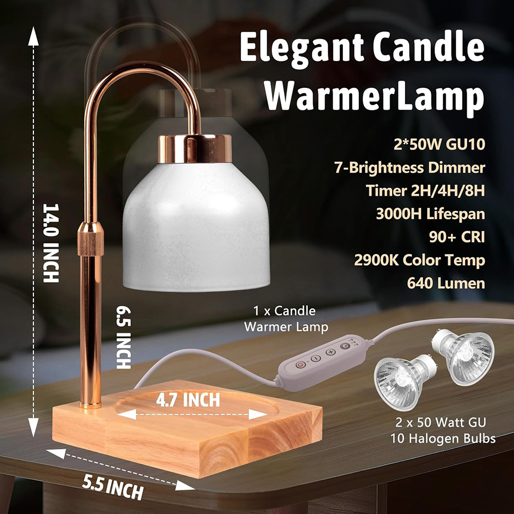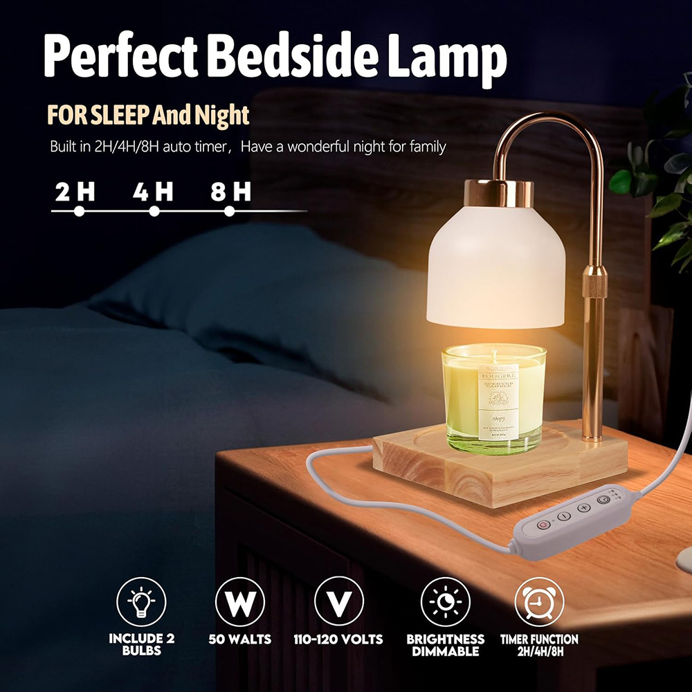 - 【Timer and Dimming Function】 Candle warmer lamp with timer and dimming functions to meet your personalized needs. You can choose from 2H/4H/8H timer settings, as well as four different dimming options, allowing you to adjust the light’s brightness for various occasions and moods.